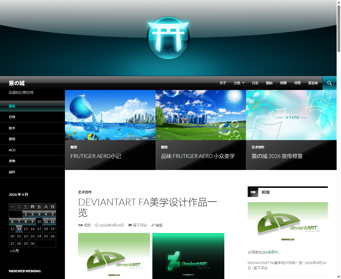 The blog space build using WordPress and Twenty Fourteen 2014 Theme, with my Frutiger stylized CSS modify, I was using days to making this, convert the Modern/Metro Flat Design theme as a Frutiger Aero style, looks like Windows XP, Longhorn and Vista mixed user interfaces.