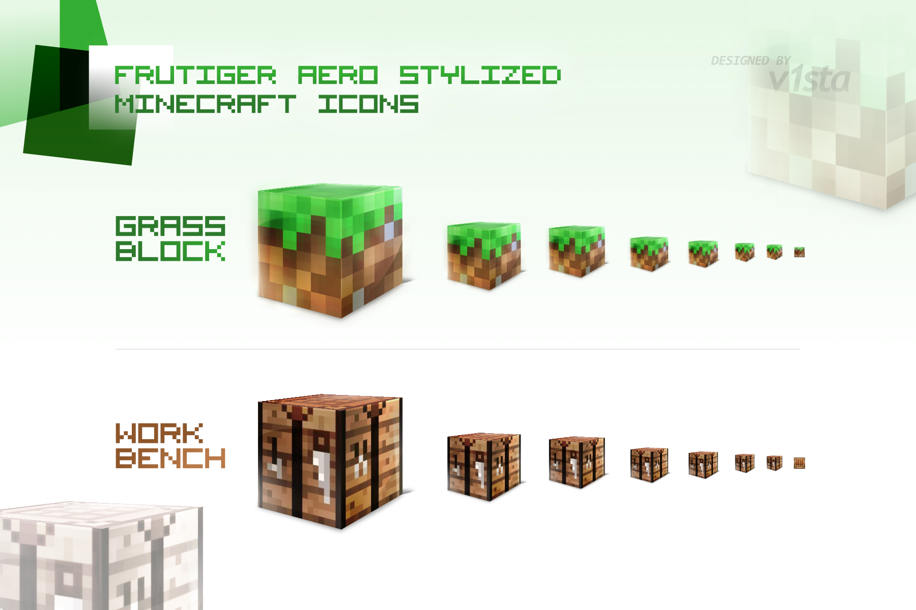现在我制作了两个方块的图标——分别是草方块和工作台。