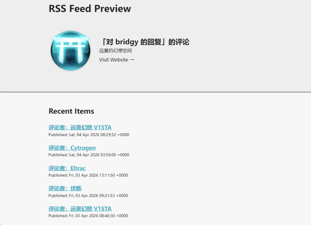 但是一位朋友提醒我,文章的评论RSS并不可用,只查询到文章本身的提要。我自己用RSS订阅器也发现了这一问题,居然只有一个页面本身的URL。