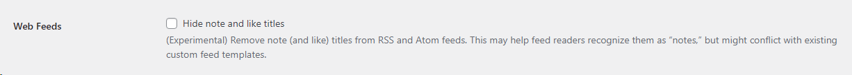 记得IndieBlocks为了兼容MicroPub协议的发布器,会对WP的一些机制做出改变。于是去IndieBlocks的插件设置查找一些疑似改变的设定项目,找到一个Hide note and like titles的设定。