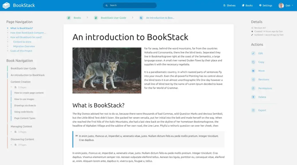BookStack 是一个基于PHP Laravel的文档网站应用程序,主要特点是采用了Material Design的UI外观,具有书籍(单行手册)与书架(收藏专栏)两种文档的管理概念,以及便于编辑的在线编辑器界面。